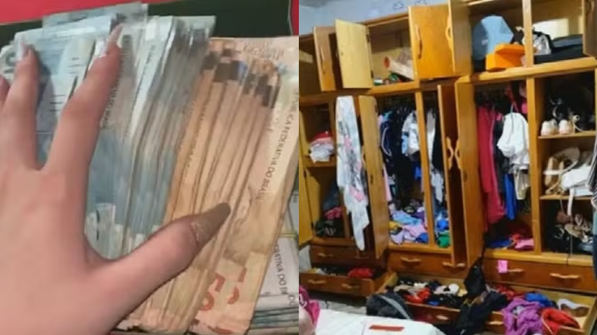 Ao chegar em casa, a jovem se deparou com os móveis e roupas revirados e o dinheiro não estava no local. A influenciadora conta que sacou o dinheiro e fez um vídeo mostrando as notas enroladas em elásticos dentro de uma caixa. A imagem foi publicada na terça-feira (9).