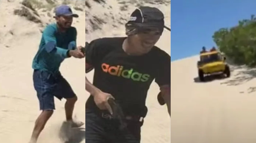 A ousadia e o descaramento de criminosos estão afastando a presença de turistas da Praia do Cumbuco, no Ceará. O vídeo feito por vítimas de uma tentativa de assalto nas dunas também registrou um segundo buggy fugindo dos bandidos armados, na manhã da última terça-feira (09). As imagens mostram o outro veículo atrás daquele onde as vítimas filmavam o passeio.