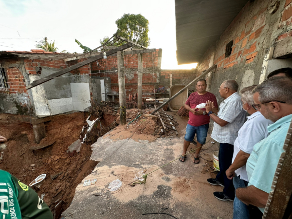 O prefeito esteve acompanhado do secretário de defesa civil, Carlos Ribeiro, de Desenvolvimento Urbano e Habitação (Semdhu), Edmilson Ferreira, e do secretário-executivo da Saad Norte, Ademar Canabrava, além de engenheiros da empresa contratada para executar a obra no local.