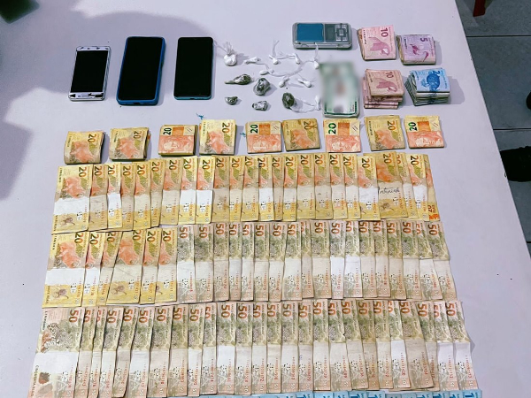 Foram apreendidos uma balança de precisão, três aparelhos telefônicos, cinco invólucros de substância análoga à maconha, nove invólucros de substância análoga à cocaína e a quantia de mais de R$ 7 mil em espécie.