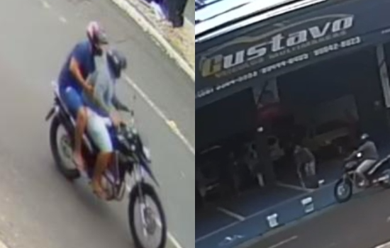Os vídeos das câmeras mostram também que um dos suspeitos chega primeiro na moto e momentos depois, o segundo comparsa entra na loja para a prática do crime, fugindo em destino ignorado na sequência.