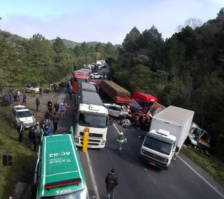 Segundo a Polícia Rodoviária Federal (PRF), três carros, duas caminhonetes e quatro carretas se envolveram no acidente. Por causa do primeiro acidente, um congestionamento se formou na rodovia e chegou a 20 quilômetros.