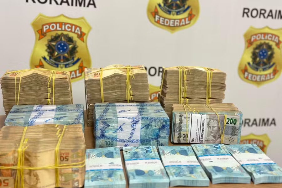 Imagem mostra o dinheiro apreendido em posse do O marido da deputada federal Helena da Asatur (MDB), dois PMs do BOPE e uma advogada que foram presos em uma operação contra compra de votos em Bela Vista, Roraima | FOTO: Divulgação/ Polícia Federal