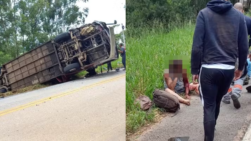 Serrania (MG) - Na manhã desta quinta-feira (21), um ônibus com 27 passageiros capotou após bater em uma caminhonete, no sentido Machado, na MGC-267. O Corpo de Bombeiros informou que pelo menos uma pessoa morreu e outras seis ficaram gravemente feridas.
