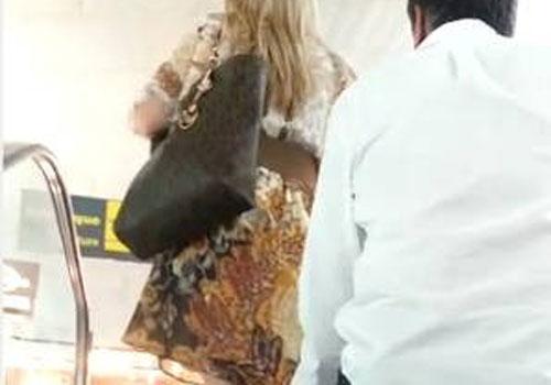 As imagens foram feitas por um grupo de funcionárias do aeroporto, e mostram o suspeito na escada rolante, logo atrás de uma mulher que usava vestido. Ele posiciona um tablet pequeno embaixo do vestido da vítima e realiza a gravação.