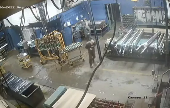 Imagens da câmera de segurança da empresa mostram a vítima saindo de uma sala com a mão no peito e cambaleando. Ele passou por um setor em que outros funcionários estavam trabalhando e saiu outra porta.
