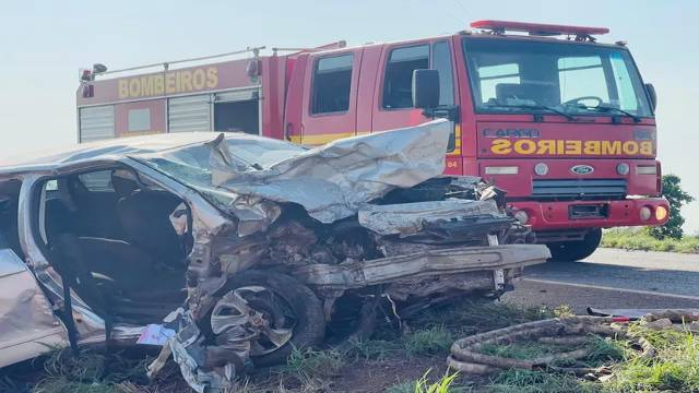 Grave colisão entre carro e caminhonete deixa um morto e três feridos | Foto: Corpo de Bombeiros