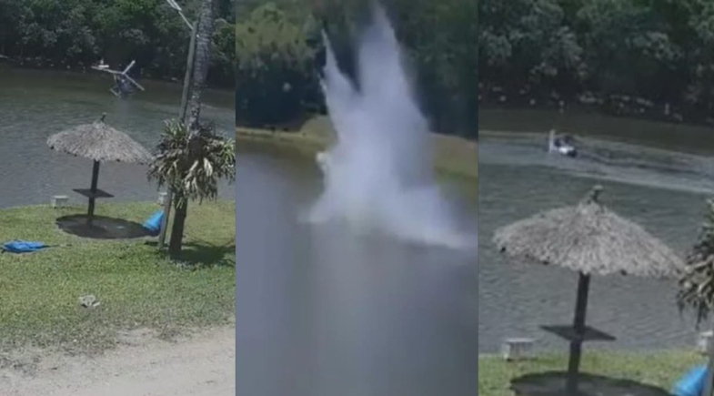 Vídeos divulgados na tarde deste domingo (26) registraram o momento em que um helicóptero caiu em um pesqueiro na cidade de São Roque (SP). Duas pessoas estavam a bordo da aeronave, e apenas o piloto sofreu escoriações leves em uma das mãos.