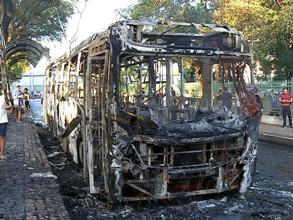 O Corpo de Bombeiros foi acionado, debelou as chamas e realizou o rescaldo no veículo. O ônibus ficou totalmente destruído. Não houve feridos.