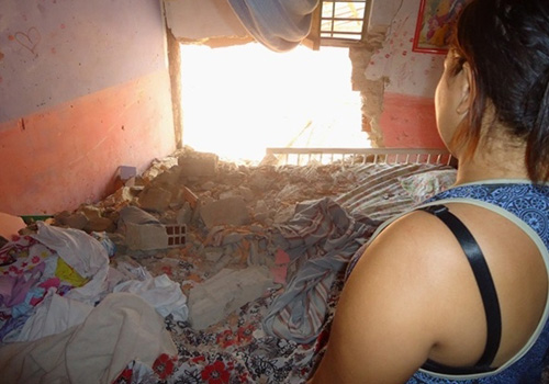 Durante a batida, uma parede e guarda roupa foram destruídos e vários tijolos de furos furam arremessados e por pouco não atingiram duas crianças filhas do casal, que estava no quarto no momento do incidente.