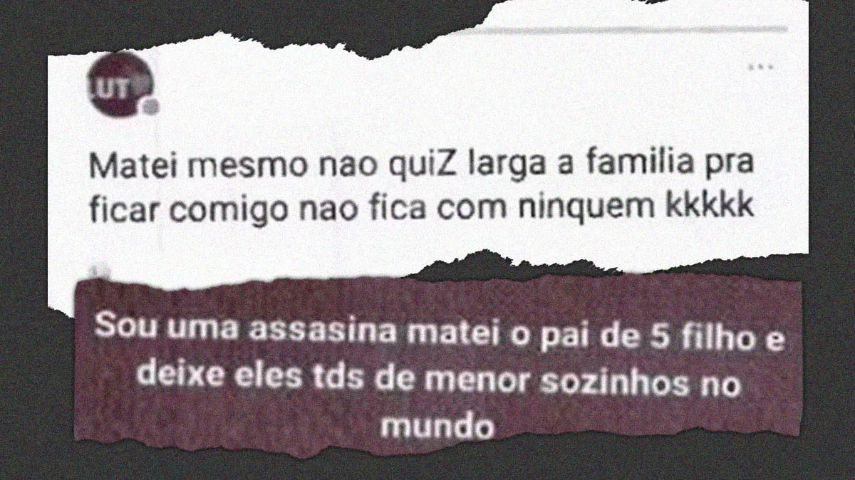 Depois de cometer o crime, a mulher compartilhou mensagens através de uma rede social onde confessava o crime: “Matei mesmo. Não quiz larga (sic) a família pra ficar comigo não fica com ninguém kkkkk”. Em outro post ela escreve:  “Sou uma assassina, matei o pai de 5 filhos e deixei eles todos sozinhos no mundo”.