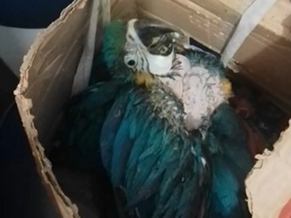 Quando a polícia chegou à residência informada pela mulher, a guarnição prendeu o homem e entrou na residência do suspeito à procura do rifle. Durante as buscas, os policiais se depararam com dois filhotes de arara-canindé presos em uma caixa de papelão.