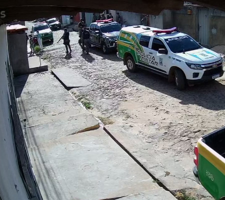 Imagens de câmeras de segurança mostram cerco da Polícia em frente à residência do acusado | FOTO: Reprodução
