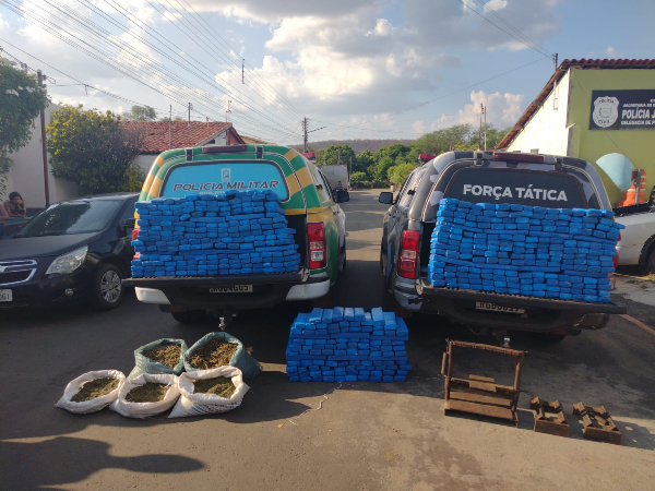 Ao todo foram apreendidos 514 tabletes de maconha, um veículo Renault Sandero, Placa: ODX-4982, uma motocicleta Honda 150, Placa: LVU-1714, três balanças de precisão, dois cadernos de anotações, dois telefones celulares, um equipamento para prensar e quatro sacos grandes contendo maconha.