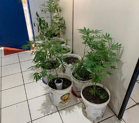 De acordo com a polícia, após denúncia de vizinhos foram apreendidas oito plantas de maconha em vasos e uma quantidade do entorpecente já desidratada para consumo.