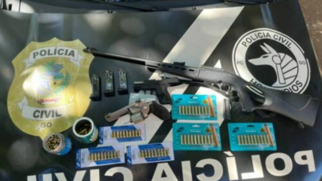 lém da prisão, a PCGO cumpriu mandado de busca e apreensão domiciliar, ocasião em que três armas de fogo e diversas munições, pertencentes ao suspeito, foram apreendidas. | Foto: Reprodução/ PC