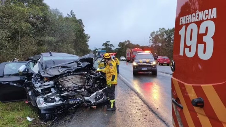 Segundo os bombeiros, a batida aconteceu no quilômetro 231, no sentido Curitibanos/Rio do Sul. Os dois veículos eram um caminhão Scania modelo P320 e uma caminhonete RAM 2500.