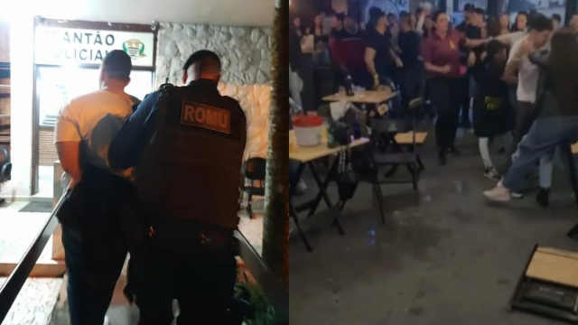 Pelas imagens, gravadas por clientes presentes no local durante a confusão, mostra Leony e seu amigo Rafael Rondi de Moraes, de 39 anos, envolvidos em uma luta corporal com um homem no andar de cima do bar Estação Chopp, no Centro da cidade. Eles trocam socos e chegaram a ser separados pelos seguranças do estabelecimento.