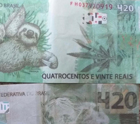 Cédula de 420 tem desenho de bicho preguiça e folha de maconha - Foto: Divulgação/Polícia Militar