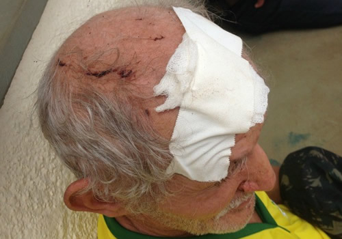 Ainda conforme o idoso, o agressor entrou e logo foi desferindo golpes de facão contra ele. "O primeiro pegou na minha cabeça. Aí saí correndo para tentar pegar algo e me defender, mas, como não encontrei nada, usei minhas mãos", disse. Ele levou cerca de seis golpes de facão, sendo dois na cabeça e outros na mãos e dedos.