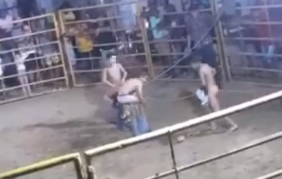 Em vídeos divulgados nas redes sociais, também é possível ver pessoas correndo atrás de um boi. Assustado, o animal tenta se esquivar, mas acaba sendo dominado pelo grupo. As imagens mostram ainda as pessoas puxando a cabeça, o rabo e as pernas do animal até que ele cai e é imobilizado no solo. Muitos chegam a ficar sobre o animal. Nas arquibancadas as pessoas gritam e aplaudem. Em outro vídeo, o alvo do grupo é um jumento que sofre as mesmas agressões.