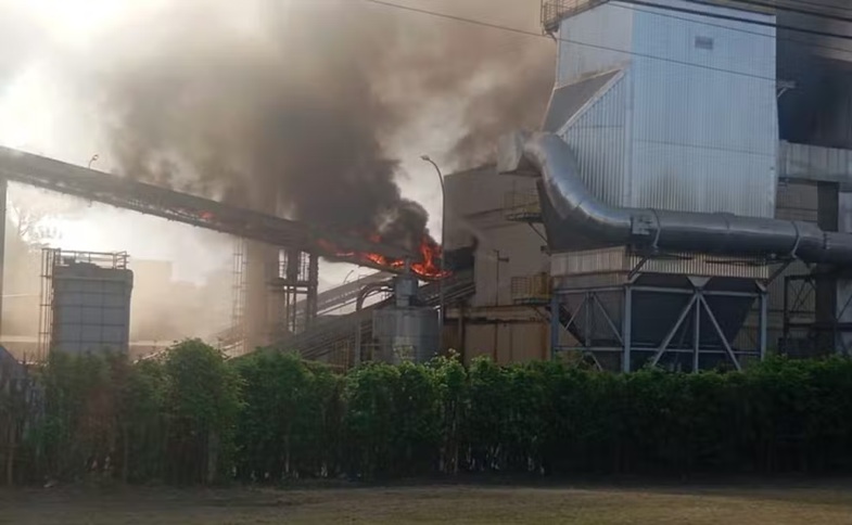 Imagens registradas por moradores mostram as chamas consumindo parte de estrutura industrial. Uma nuvem preta se espalhou pela cidade e chamou a atenção de motoristas e pedestres.