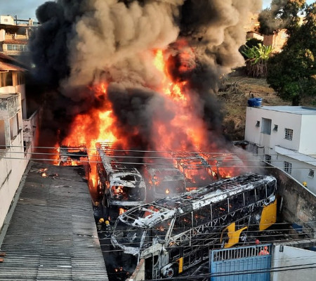 Um incêndio atingiu uma garagem de ônibus de turismo e destruiu 10 veículos na manhã desta terça-feira (15), no bairro Aparecida, na Região Noroeste de Belo Horizonte. O Corpo de Bombeiros foi chamadado ao local e as chamas foram controladas cerca de duas horas e meia após o início do incêndio.
