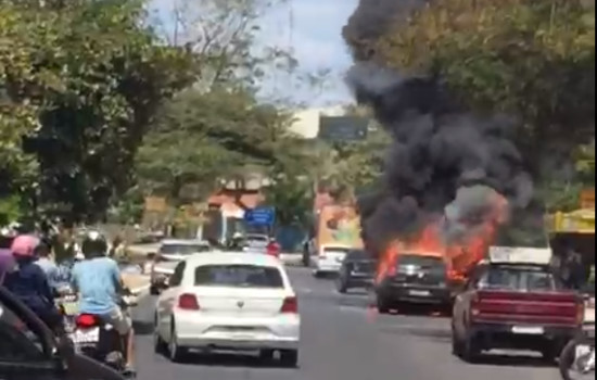 Incêndio destrói veículo em frente ao cemitério São José; veja vídeo