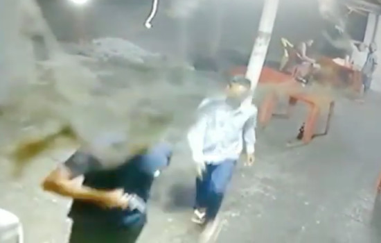 O momento da fuga dos criminosos foi registrado pelas câmeras de segurança do estabelecimento.