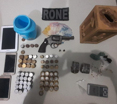 Ao perceber a ação do adolescente a polícia o capturou e realizou uma revista na casa, onde foi encontrado uma quantidade de entorpecentes, como maconha, crack e cocaína, uma balança de precisão, R$ 540 em espécie e um estojo calibre 38. No telhado da casa foi encontrado uma arma de fogo calibre 38.