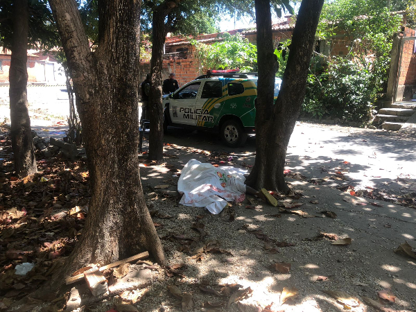 "Um jovem de aproximadamente 20 anos foi executado, na frente da namorada e da sogra,  por 4 homens encapuzado que estavam em um carro branco. Segundo informações da população, os tiros foram cabeça, porém não podemos confirmar, porque quando chegamos ele estava coberto. O que se sabe, é que tem muitas cápsulas de arma de fogo no chão. Enquanto menor, ele já tinha uma ficha de crimes, porém pai dele disse que o jovem tinha apoio socioeducativo, e que ele estava tranquilo vivendo na casa da a sogra dele", declara o Sargento Renato.