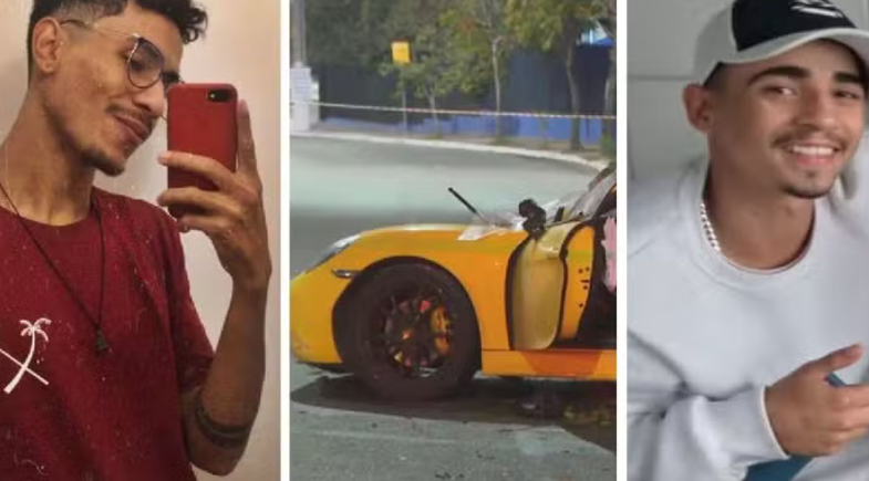 Igor Sauceda (à esquerda) foi acusado de usar seu Porsche amarelo para atropelar e matar motociclista Pedro Figueiredo (à direita) em São Paulo | — Foto: Reprodução