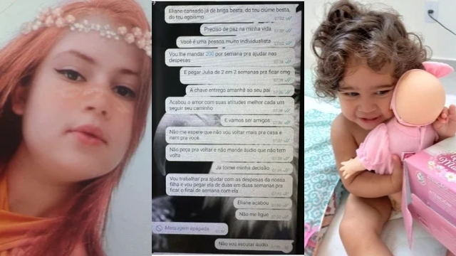 A polícia teve acesso às mensagens trocadas entre o casal horas antes do crime. Em uma das conversas, o homem diz que “precisa de paz na vida” e que está “cansado de briga besta, do ciúme e de egoísmo”. Em outro momento, ele diz que vai auxiliar financeiramente a mulher e a criança, enviando uma quantia em dinheiro todas as semanas. “Vou lhe mandar 200 [reais] por semana para ajudar nas despesas. E pegar Julia [a filha do casal], de 2 em 2 semanas para ficar comigo”, disse.