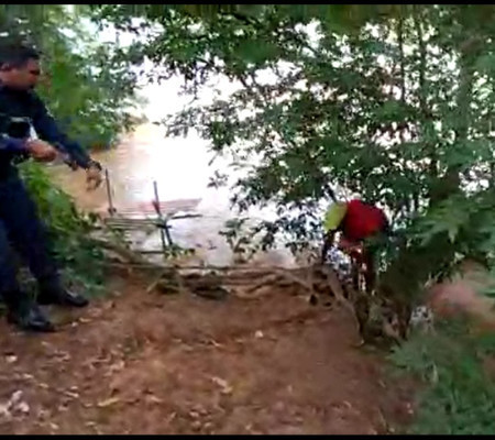 O repórter Ivan Lima acompanhou toda a ocorrência e flagrou o momento em que o acusado deixa às margens do rio e se entrega aos guardas.