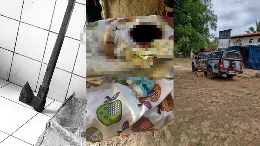 O recém-nascido, identificado como Cristiano Ronaldo, foi morto com golpes de machado, nas primeiras horas da manhã desta quarta. O crime foi descoberto pelo pai, que ao acordar estranhou a ausência da mulher, foi até o quintal e se deparou com a tragédia.
