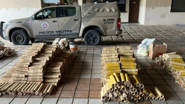 A Polícia Militar da Bahia (PM) apreendeu na tarde deste sábado (3), mais de 1200 espadas e aproximadamente 200 quilos de pólvora na zona rural de Cruz das Almas, no recôncavo baiano. Segundo a PM, ninguém foi preso. Os homens que estavam nos locais fugiram após a chegada dos agentes.
