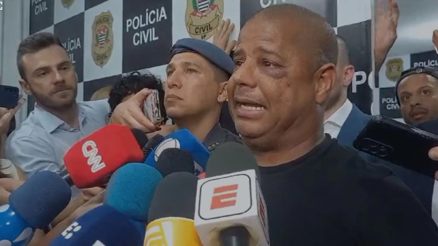 "Chegaram três indivíduos e me abordaram, e aí tomei essa coronhada na minha cabeça e depois não vi mais nada. Entrei no carro e já colocaram o capuz e não vi mais nada", disse.