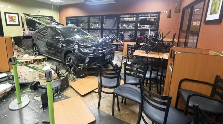 Motorista confunde pedais e carro invade lanchonete em São Paulo
