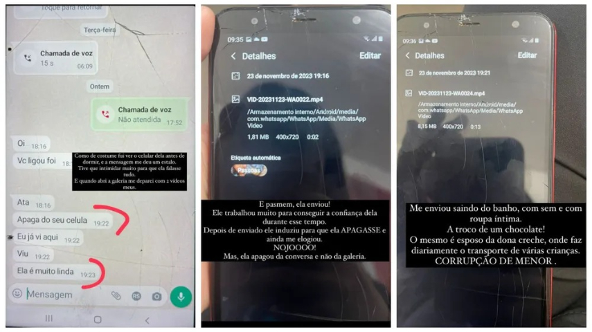 O motorista persuadiu a criança, prometendo um "presente incrível" na forma de chocolate, condicionando-o à obtenção de fotos e vídeos da mãe. O suspeito, que além de dirigir a van escolar, atua como fotógrafo, orientou a maneira como a menina deveria capturar as imagens.