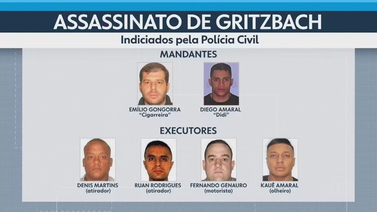 O cabo Denis Martins e o soldado Ruan Rodrigues são acusados de matar Vinicius Gritzbach com fuzis, enquanto o tenente Fernando Genauro ajudou na execução, levando-os até o local do crime e facilitando a fuga. Os três estão presos.