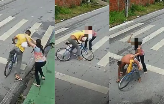 Mulher derruba e agride criminoso de bicicleta para evitar assalto no CE
