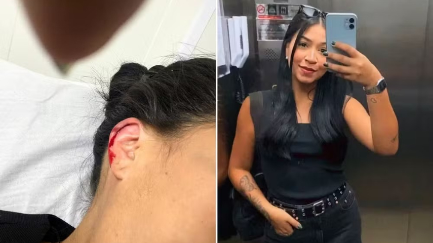 Uma jovem de 28 anos, identificada como Erica Lima, foi agredida por um homem em situação de rua em Santos, litoral de São Paulo, nesta terça-feira (19). Ela contou ao G1 que caminhava em direção ao trabalho quando foi surpreendida pelo soco que atingiu e cortou sua orelha. Ela detalha ainda que bateu a cabeça na porta de uma loja e caiu no chão após o golpe.