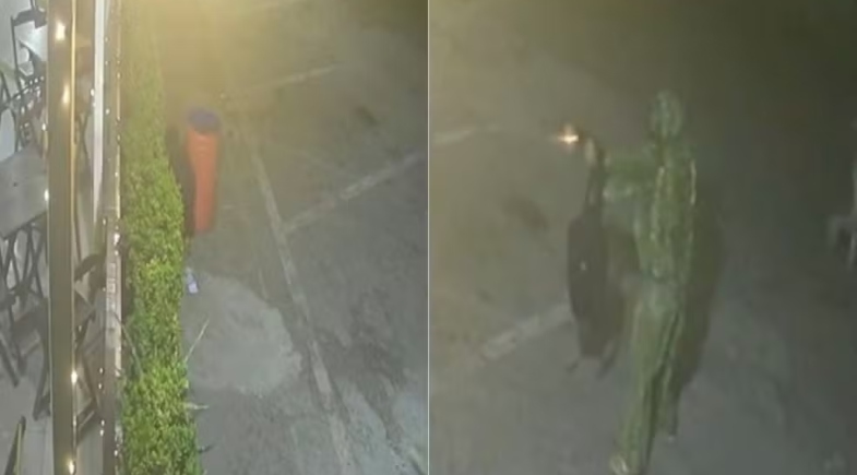 O vídeo gravado mostra o momento em que a mulher se aproxima do restaurante a pé, junto com o companheiro, quando os tiros começam a ser disparados. O homem corre para dentro do restaurante. Já a mulher tenta se proteger atrás de um objeto. Pelo menos quatro criminosos se aproximam e atiram contra ela.