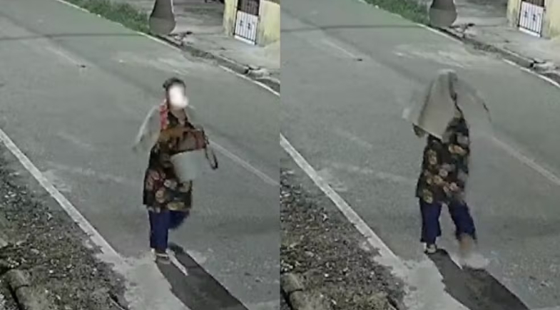 Imagens mostram a mulher carregando uma mochila dentro de um balde. Segundo informações policiais, dentro da mochila estava a recém-nascida