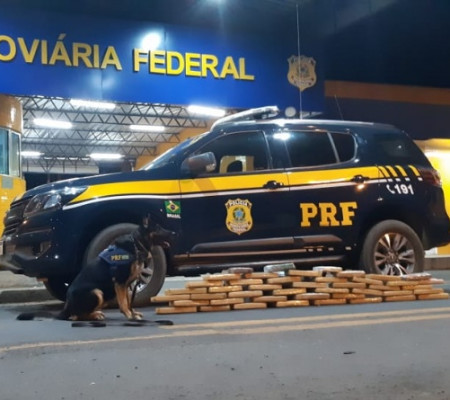Os policiais abordaram o veículo e, ao fazer a fiscalização, no interior do veículo com a ajuda de cães farejadores, verificaram em uma mala com 37 kg de maconha. Toda a droga estava acondicionada em tabletes e está avaliada em R$ 37.000,00. Além da droga foram apreendidos celulares e R$ 960,00 em dinheiro.