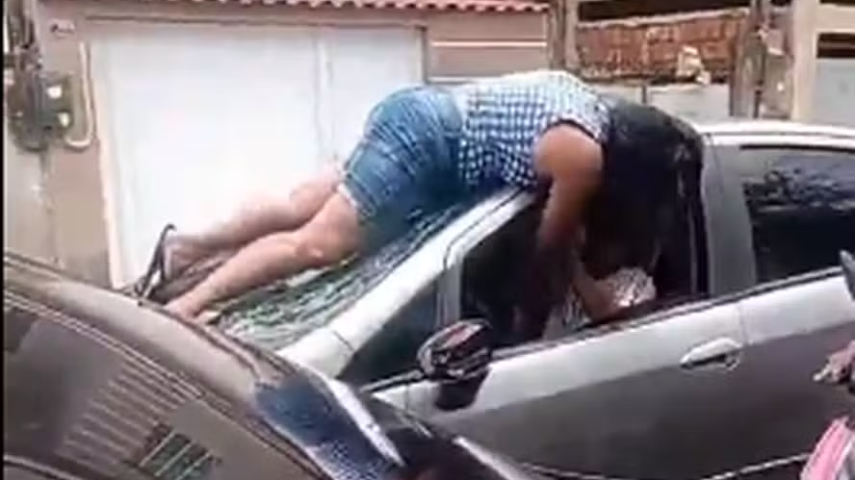 Uma mulher causou confusão em uma rua de Nilópolis, no Rio de Janeiro, após flagrar o marido com uma suposta amante dentro do carro. O vídeo, que repercutiu nesta quarta-feira (04), mostra o momento em que ela destrói parte do para-brisa, sobe em cima do veículo e xinga a outra mulher.