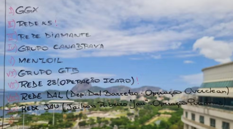 O material inclui listas de pessoas, empresas, operações e referências como “mapeamento do Judiciário”, “mapeamento das Procuradorias estaduais”, “mapeamento do ministério” e “mapeamento dos portos” — parte de um levantamento interno feito pela Refit, segundo investigadores.