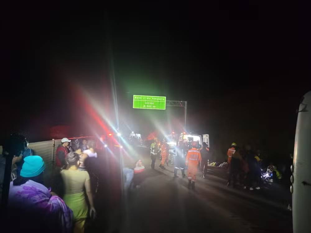 Na noite desta sexta-feira (27), um ônibus que levava pessoas bateu em um barranco, tombou e deixou ao menos 20 pessoas feridas no km 403 da BR-381, em Bom Jesus do Amparo, na Região Central de Minas Gerais. Não houve mortes, segundo a Polícia Rodoviária Federal - PRF.