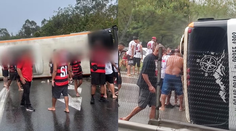 Ônibus que transportava torcida do Flamengo tomba no Rio de Janeiro e deixa 46 feridos