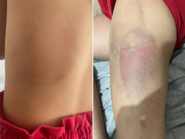 Para a imprensa local, a mãe explicou que a menina passou o fim de semana com o pai, retornando para casa na segunda (17), em Guarujá. "Ela [filha] chegou assustada e com diversas manchas pelo corpo. Perguntei o que eram aquelas marcas e ela me disse que tinha caído de bicicleta”, disse a mãe, ao G1.
